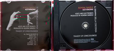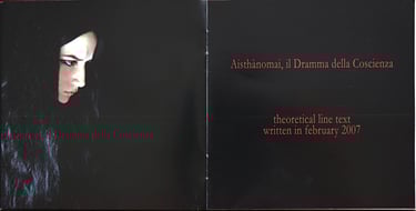 First, it is necessary to read the booklet texts where the aesthetics topics are discussed. "‘Voice-Matter-Nature. ‘Electronics-Suond-Technique. Language-Text-Concept’. These are the territories in which Aisthànomai takes shape… and where my cognitive non-condition law is placed as an expressive aim freely pursued."