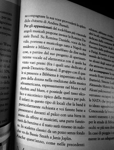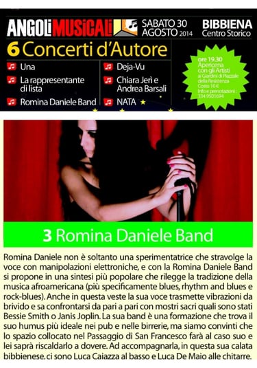 Italian official press for 'Musical Corners' in Bibbiena IT presents Romina Daniele Band as 'visceral blues'.