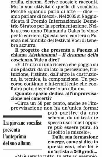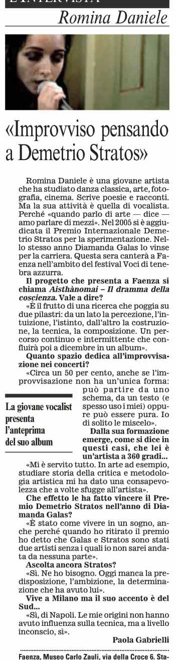 Friday 5th October 2007, p. 15. On the occasion of "Voci di Tenebra azzurra" Festival, Faenza (Ra).: