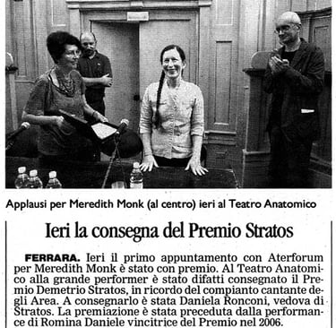 Here there are some Italian press articles about the second edition of the Stratos Prize, given to Meredith Monk for the career, and virtually given to Romina Daniele for the second time as best new artist.