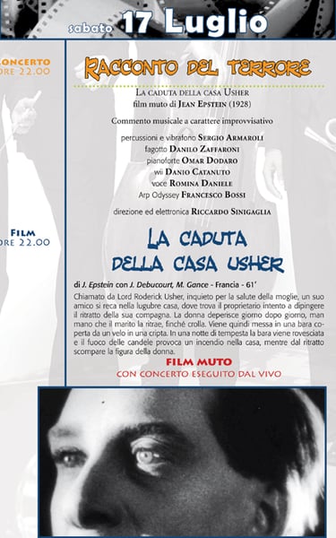 (Jean Epstein, France, 1928) è stato proiettato con improvvisazioni dal vivo dell'ensemble del Maestro Riccardo Sinigaglia, con la partecipazione di Romina Daniele.