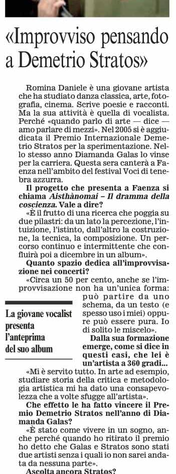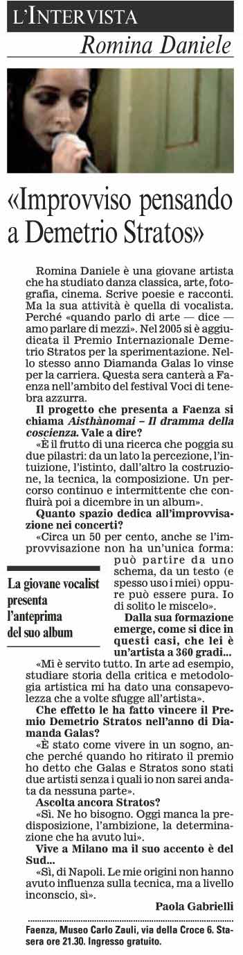 Venerdí 5 Ottobre 2007, p. 15. In occasione del Festival "Voci di Tenebra azzurra", Faenza (Ra).: