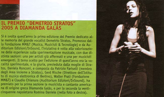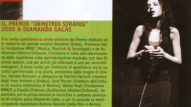 Romina Daniele vince il Premio Internazionale Demetrio Stratos per la Sperimentazione Musicale, dal tema Vocalità e Ricerca, presentando il progetto Diffrazioni Sonore.