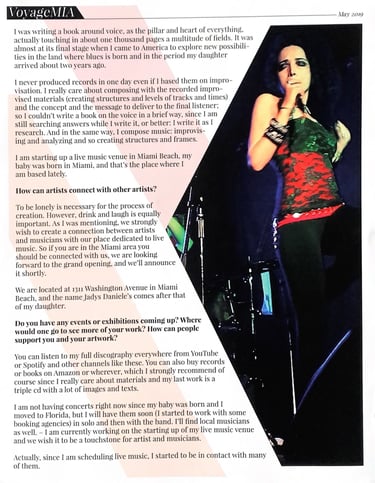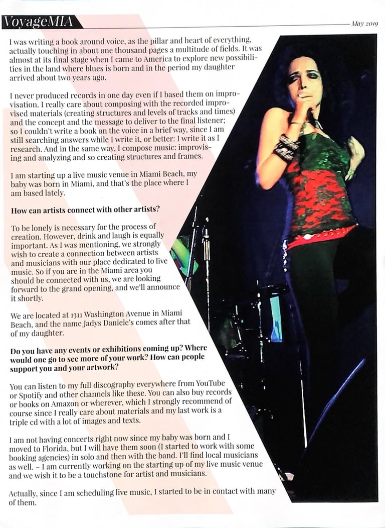 Ecco la nuova intervista per Voyage Miami Magazine, sulla mia musica, Miami e Jadys Daniele's!
